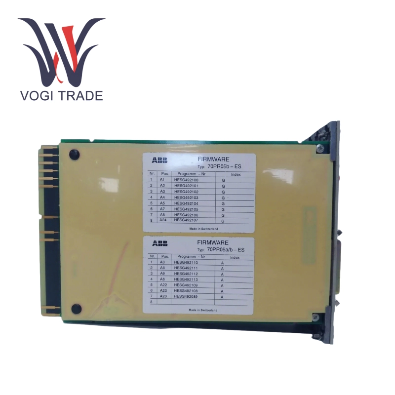 Dahili fotoelektrik izolasyon ve elektromanyetik koruma teknolojisi, donanım seviyesi arıza koruma mekanizması ile birleştirildiğinde, ABB 70PR05B-ES HESG332204R0001'in toz, titreşim ve -20 ℃ ~ 70 ℃ sıcaklık değişim senaryolarında stabil olarak çalışmasını sağlar.