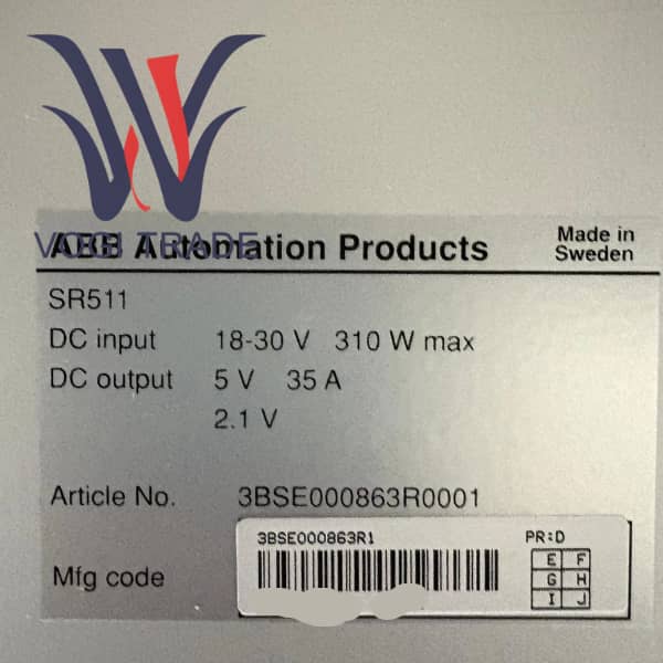 SR511, ABB Advant Master dağıtılmış proses kontrol sistemindeki hassas bir güç yönetimi bileşenidir. 3BSE000863R1, "Regülatör 24V/5V" olarak tanımlanır. Temel işlevi, güç kalitesi açısından son derece yüksek gereksinimleri olan Advant Master sistemi içindeki dijital mantık devrelerini beslemek için sistem tarafından sağlanan +24V DC ana güç kaynağını +5V DC voltajına dönüştürmek ve stabilize etmektir.