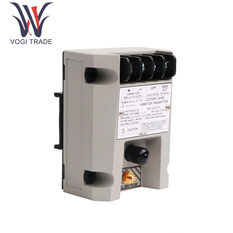 Bently Nevada 990-05-XX-01-00, petrokimya tesislerindeki pompalara, kompresörlere, fanlara ve diğer ekipmanlara uygulanır; gerçek zamanlı titreşim izleme, ekipman arızalarına karşı erken uyarı sağlar.