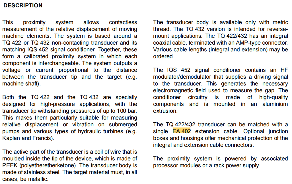 Marka: Titreşim ÖlçerAçıklama:Uzatma kablosuDurum: YeniGaranti: 1 yılEnvanter Adeti: 1Ödeme süresi: T/TNakliye Limanı: XiamenEA402 913-402-000-012-A2-E040-F0-G000, Vibro-Meter tarafından üretilen, esas olarak dönen makinelerin titreşimden korunması ve izlenmesi için kullanılan endüstriyel bir titreşim izleme modülüdür.