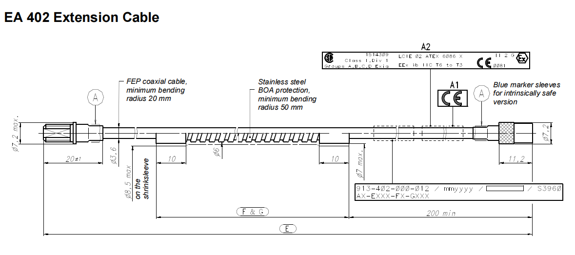 EA402 Exi kablosunun kendisi, enerji sınırlama devresinde bir anahtar bağlantı olarak güvenliği "üretmez", ancak kendinden emniyetli devrenin tamamının bir bileşenidir. 913-402-000-013-A1-E050-F0-G000, IQS 452 ön amplifikatör ile birlikte çalışmalıdır. Ön amplifikatör, voltaj sınırlama, akım sınırlama ve izolasyon devrelerini dahili olarak entegre eder. Bu devreler, güvenlik bölgesinden gelen enerjiyi son derece düşük bir seviyeye kadar sınırlandırır ve ardından EA402 kablosu aracılığıyla tehlike bölgesinde bulunan TQ probuna iletir.