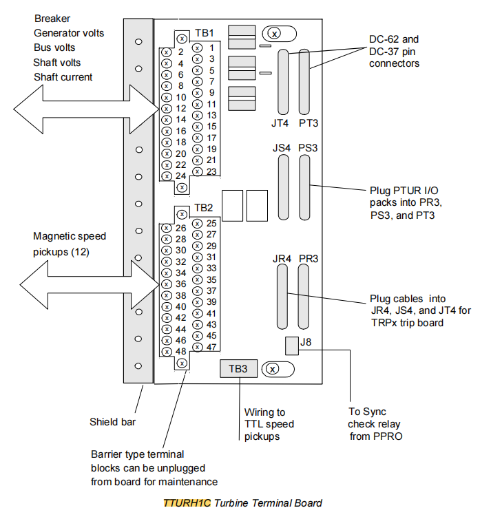 Mark VI VTUR I/O Kartı + TRPXH1B Terminal Kartı, IS200TTURH1CED, Mark VIe'deki IS200TTURH1CED'in doğrudan öncülüdür.