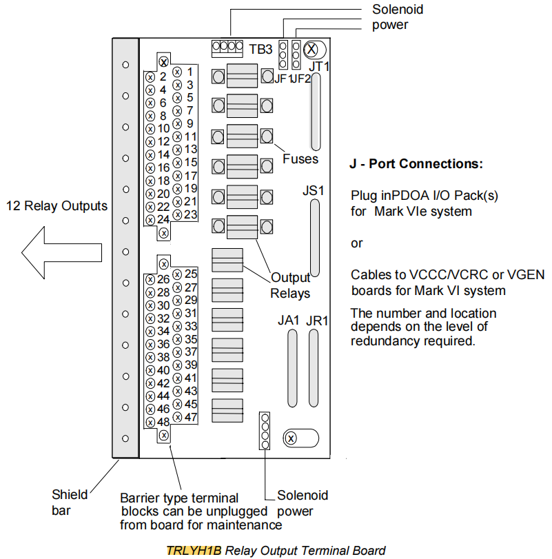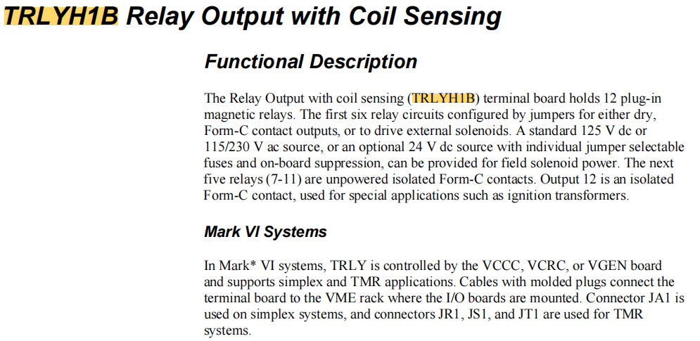 IS200TRLYH1B, Mark VIe için standart röle çıkış terminal kartı.