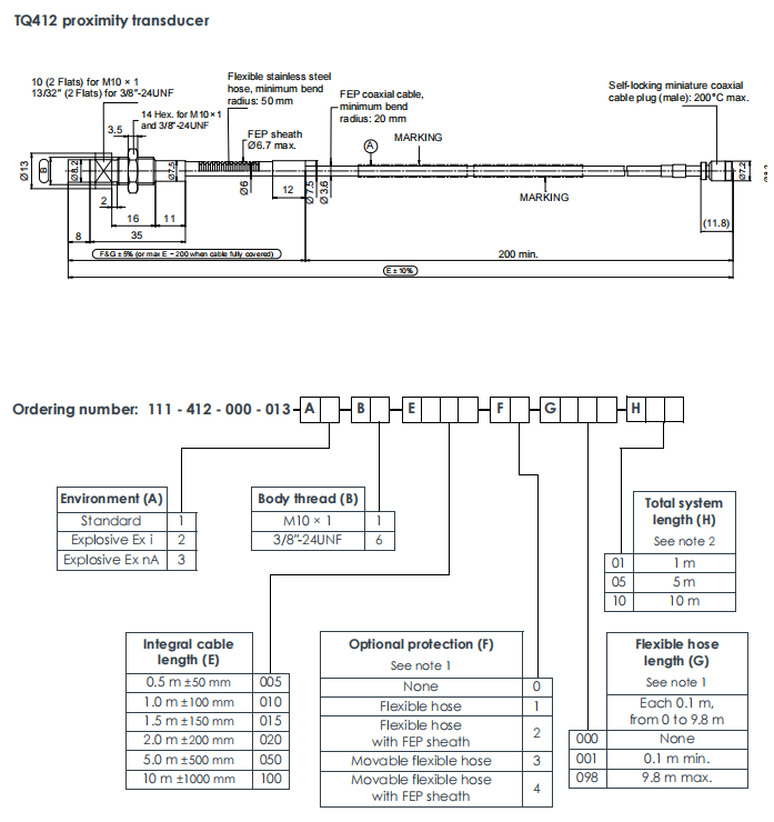 M10x1, 1m entegre kablo + 9m uzatma kablosu, paslanmaz çelik hortum +FEP kılıf (1m) |