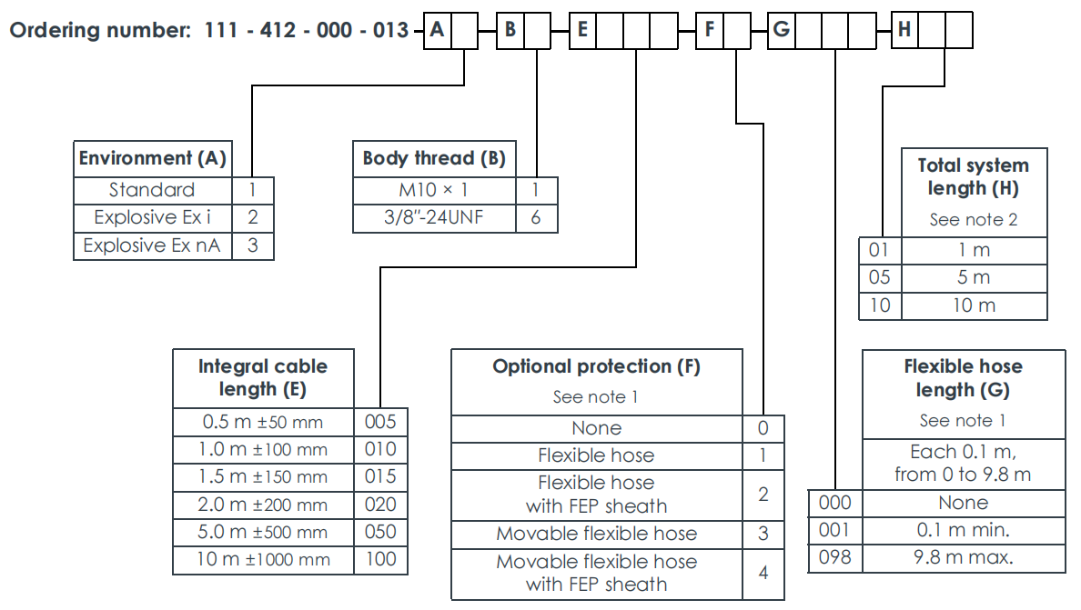 111-412-000-013: Temel ürün numarası, TQ412 serisi sensör olarak açıkça işaretlenmiştir